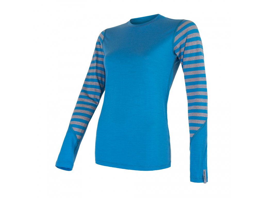 SENSOR MERINO ACTIVE dámské triko dl.rukáv modrá/šedá pruhy