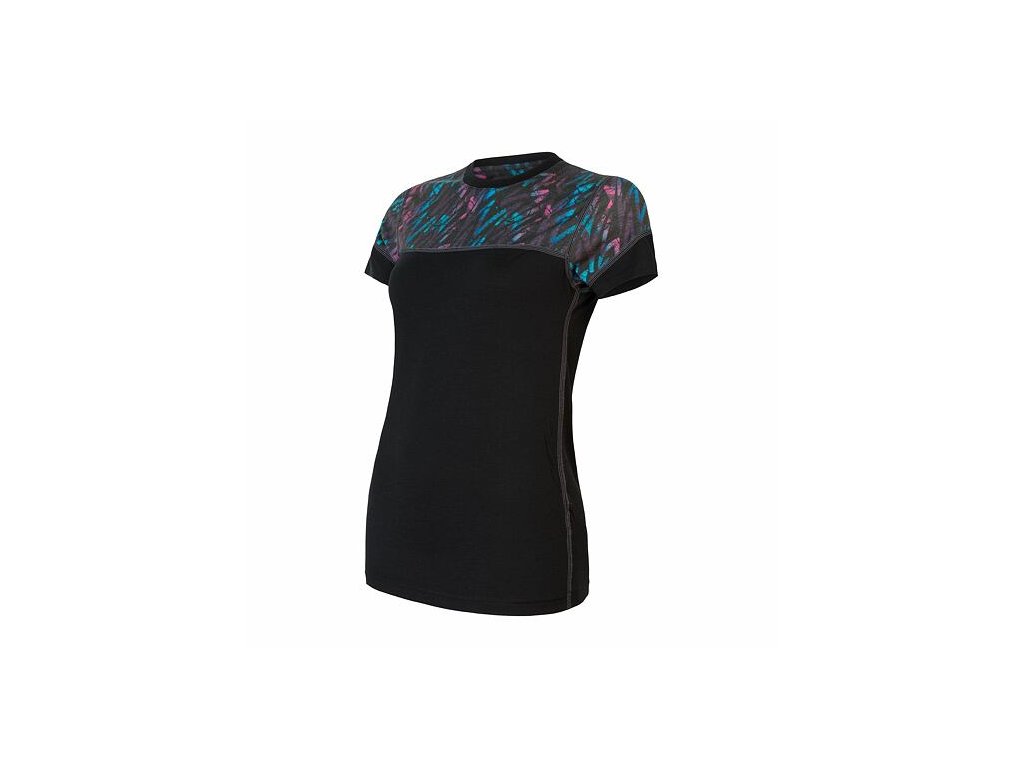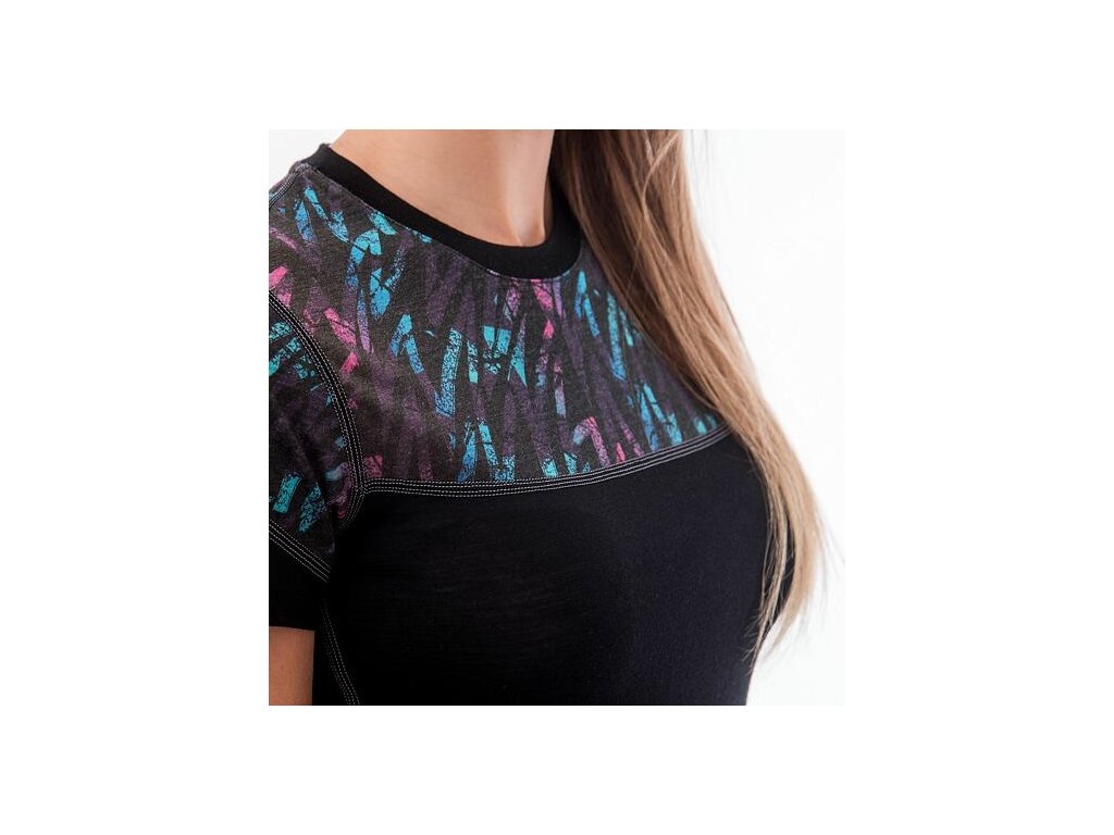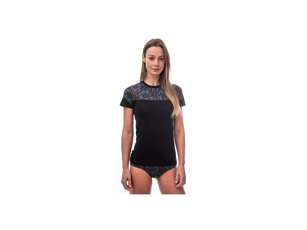 SENSOR MERINO IMPRESS dámské triko kr.rukáv černá/stripes